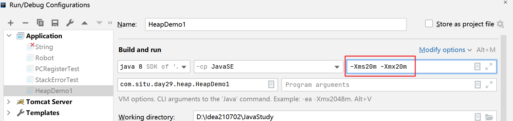 * 开发中建议将初始堆内存和最大的堆内存设置成相同的值。