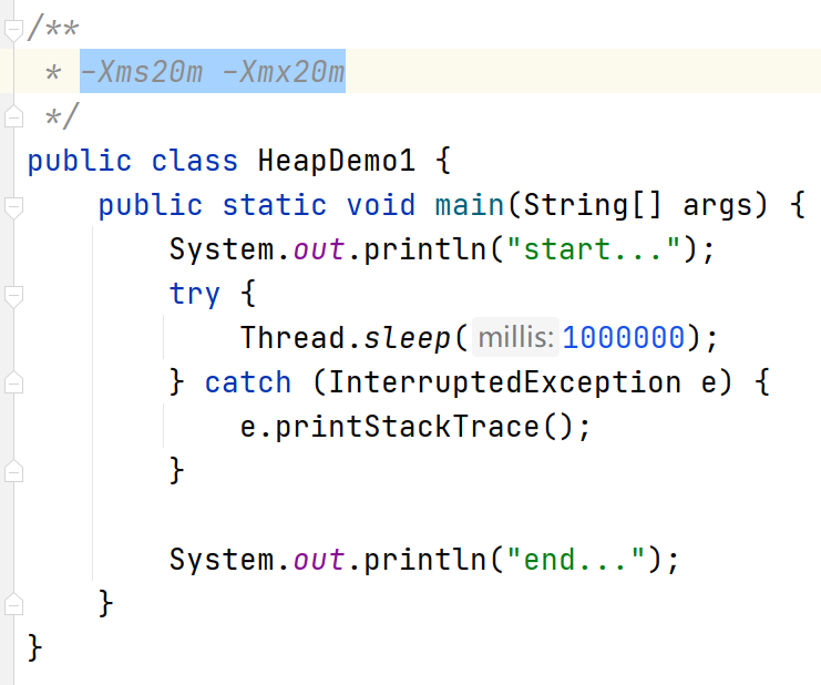* -Xms 用来设置堆空间(年轻代+老年代)的初始内存大小
