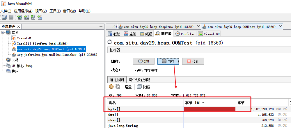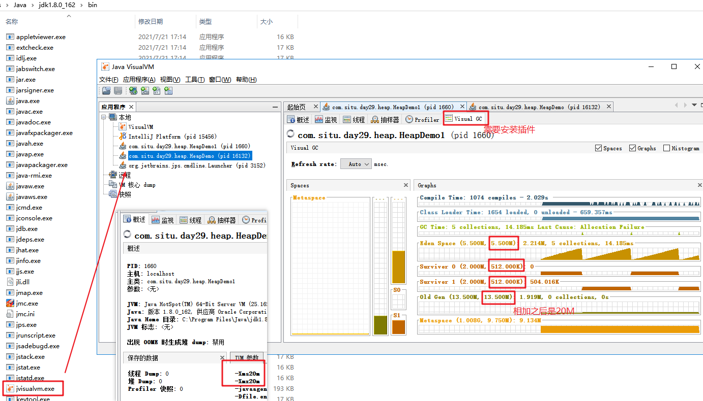 使用 JDK 自带的工具:Java VisualVM ,来查看堆内存