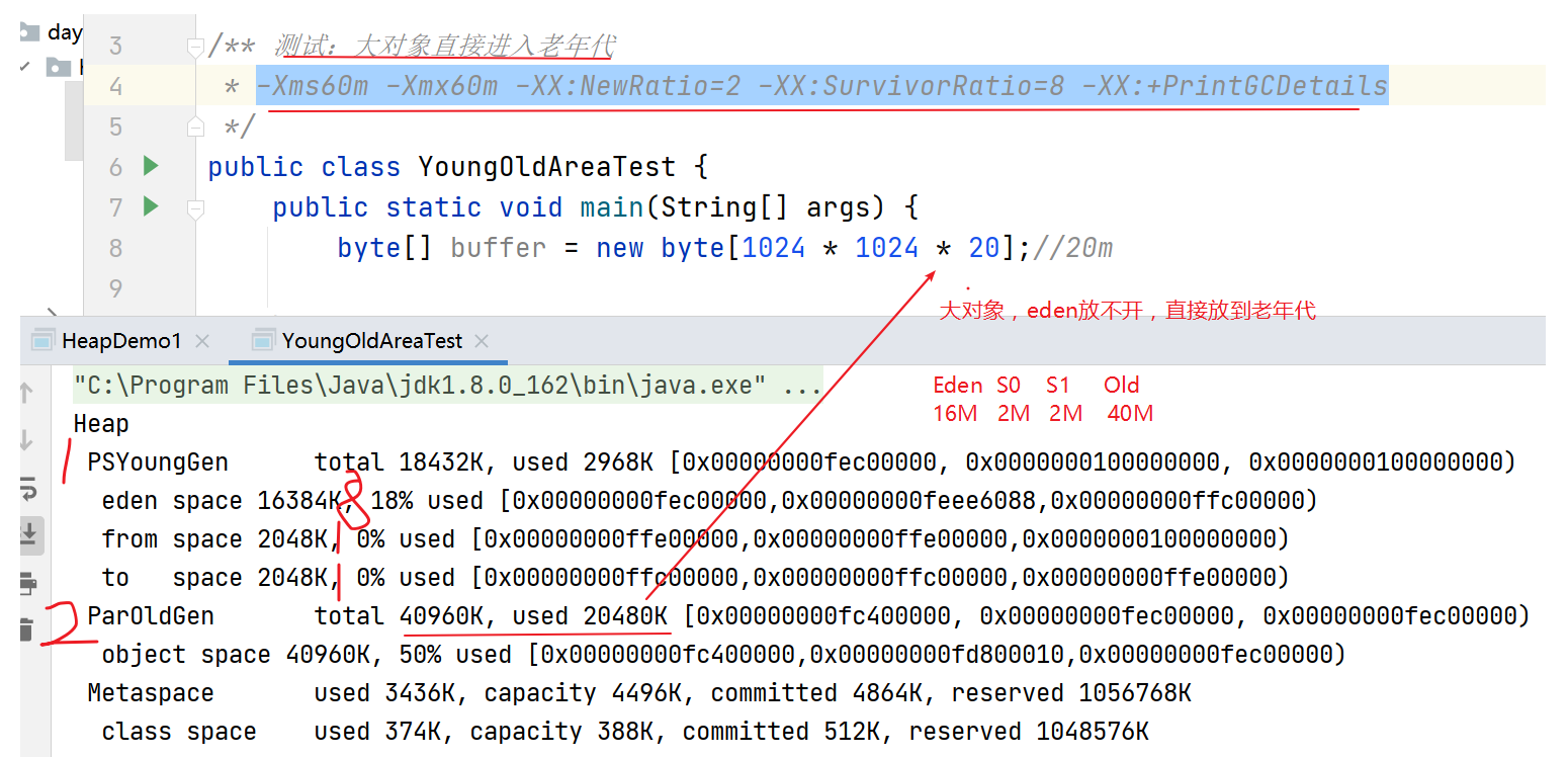 2、几乎所有的Java对象都是在Eden区被new出来的。绝大部分的Java对象的销毁都在新生代进行了(有些大的对象在Eden区无法存储时候,将直接进入老年代)