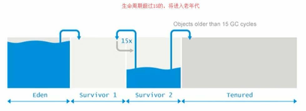4、新生区的对象默认生命周期超过 15 ,就会去养老区养老