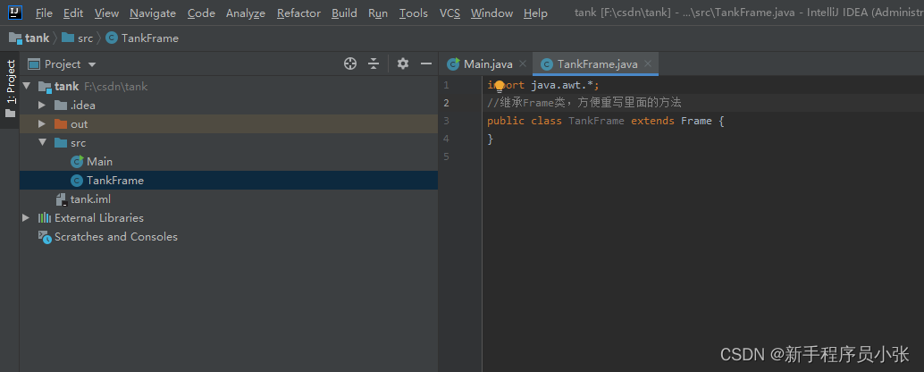 1.新建TankFrame类继承Frame类方便重写里面的方法
