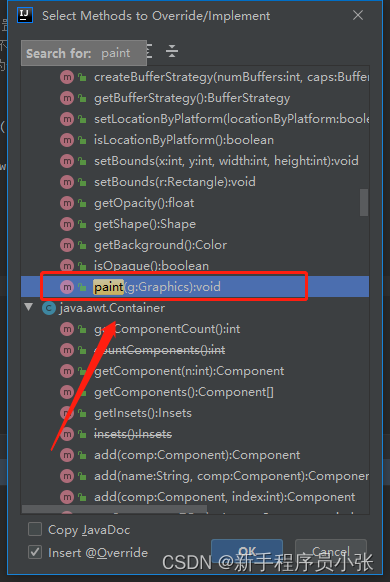 5.在TankFrame中重写Frame类中的paint方法(这里可以用idea中的快捷键alt+insert键)