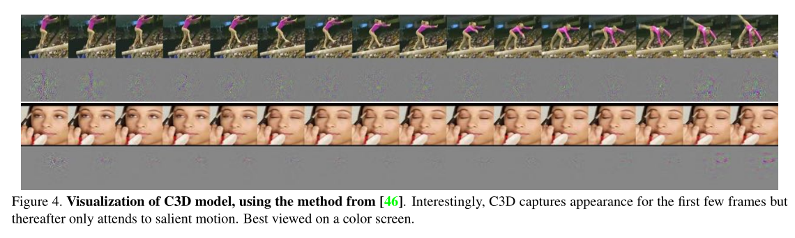 也就是说,C3D在跟踪图像的外观特征,和视频中的运动特征,论文中有更多可视化的例子。