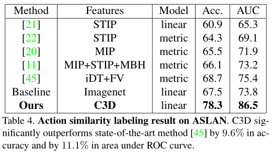 结果:在ASLAN上,C3D做到了SOTA,在ROC曲线(AUC)下显著优于最先进的方法