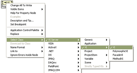 首先,确定您每次运行程序时希望前面板所在的位置的坐标。这可以使用VI类的属性节点来完成。右击属性节点的黄色部分,选择选择类»VI服务器» VI»VI