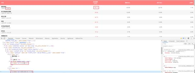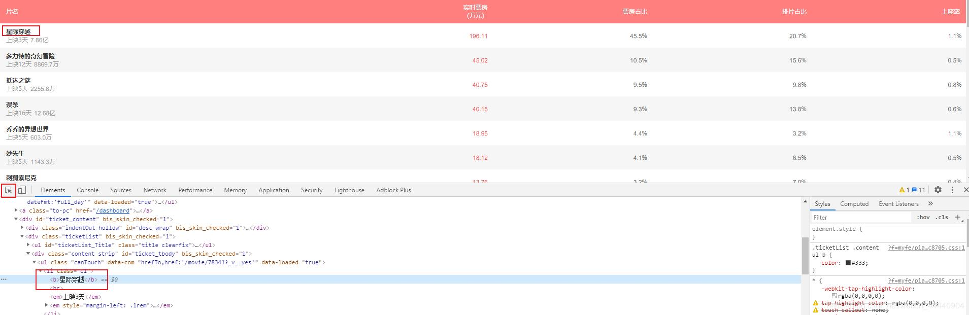 可以看到这个标签里面就是我们想要获取的电影标题信息,别急,我们在接着往下看,再次点击标题下面的7.86亿和实时票房,可以发现开发者工具里面显示的并不是我们看见的数字,这就是我们本次爬虫的重点字体反爬