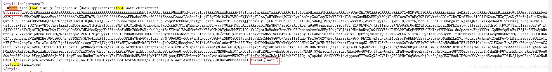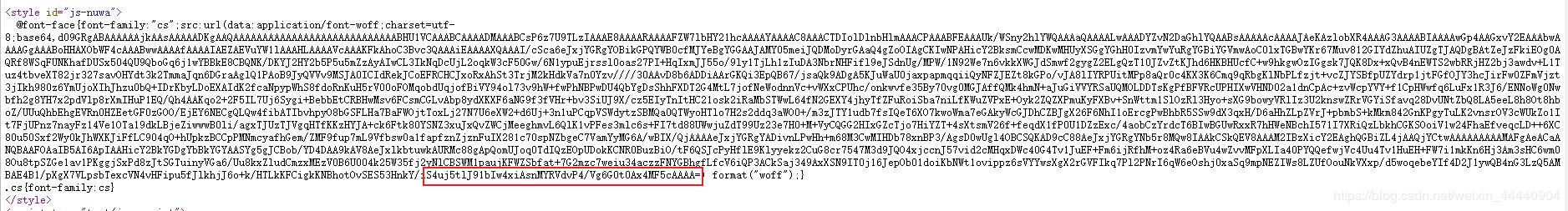 通过分析这段代码可以看出这个是这个是通过base64进行加密的,文件后缀为woff