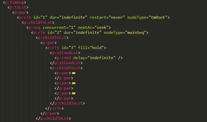 par -> cTn (id="3") -> childTnLst -> par -> cTn (id="4") -> childTnLst -> par -> cTn (id="5")