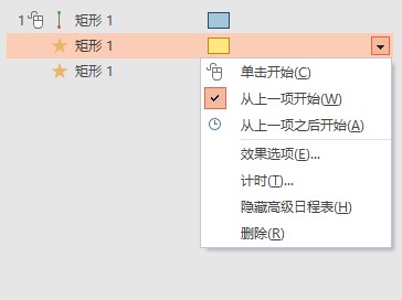回到动画的触发顺序,依然是在主序列上,如果是单次点击同时出现三个动画,也就是说第一个动画是点击触发,另外两个动画是设置 从上一项开始 的动画