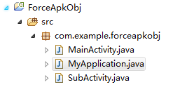 package com.example.forceapkobj;import android.app.Application; import android.util.Log;public class MyApplication extends Application{@Overridepublic void onCreate() {super.onCreate();Log.i("demo", "source apk onCreate:"+this);}}