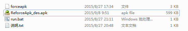 那么通过上面的三个步骤之后我们得到一个签名之后的最终文件:ReforceApk_des.apk