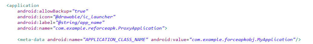 在这里我们定义了源程序Apk的Application类名。