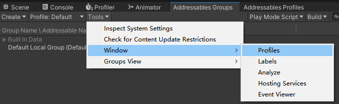 选择合适的Addressables版本下载安装完成后,选择Groups