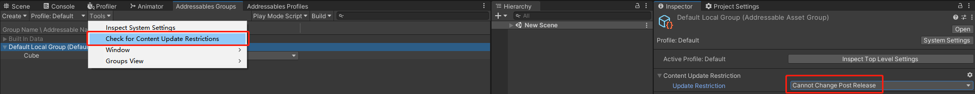 如果是Cannot Change Post Release和Local,那我们就需要点击Tools->Check for Content Update Restrictions,它会生成一个新的Group,如下图:
