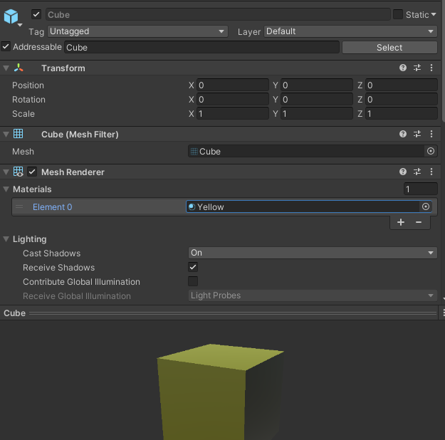 Addressables.InstantiateAsync("Cube");