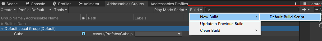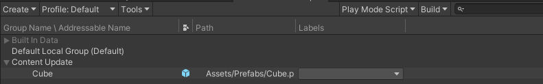 1.勾选Build Remote Catalog,取消勾选Disable Catalog Update on Startup,取消之后这样每当我们重新打开App,调用Addressables.InstantiateAsync生成这个Cube的时候Addressables都会先检查catalog更新然后下载最新的Cube到本地,最终在场景里生成最新的Cube