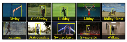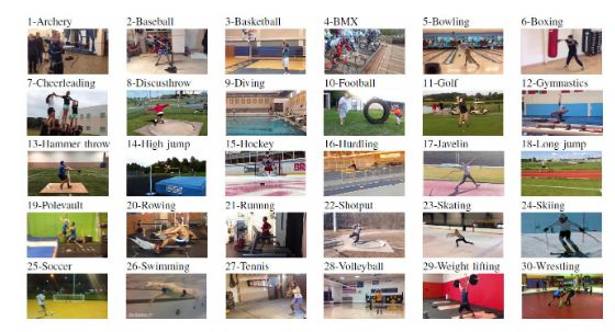 一个主要关于运动的数据集,这个数据集也是质量比较高的数据集,主要为13个常规的运动动作。但是美中不足的同样是每种数据的数量都比较少,不过这个数据集出了一些后续的数据集比如UCF-50(http://crcv.ucf.edu/data/UCF50.php)和UCF-101(http://crcv.ucf.edu/data/UCF101.php)等。