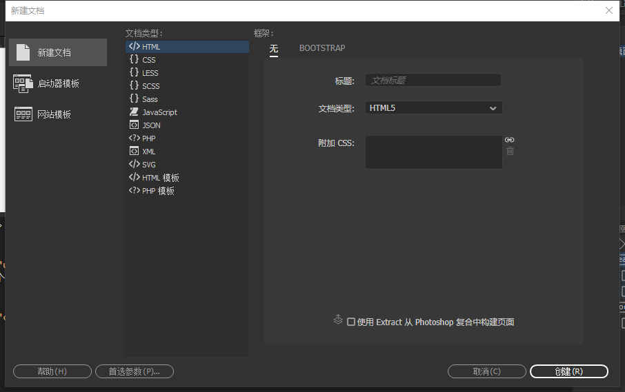 9.点击文件或者Ctrl+n创建新文档,文档类型选择HTML5