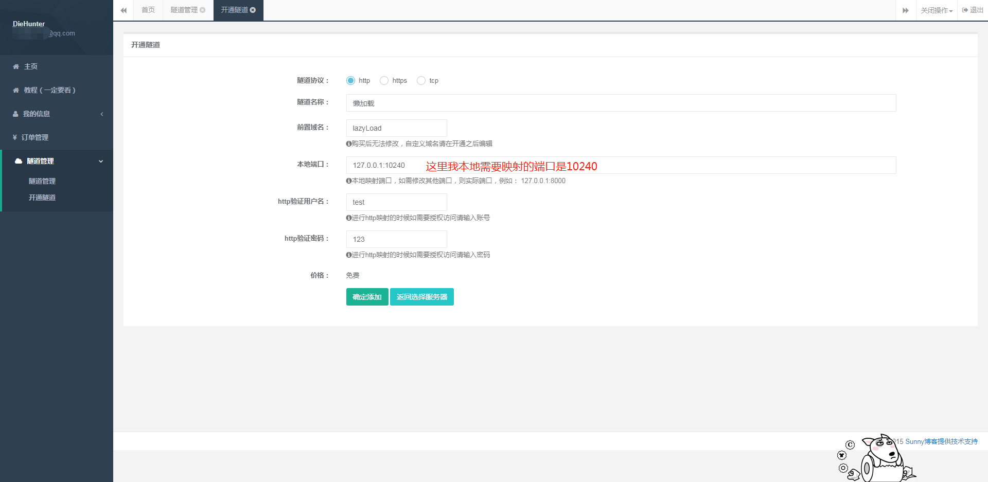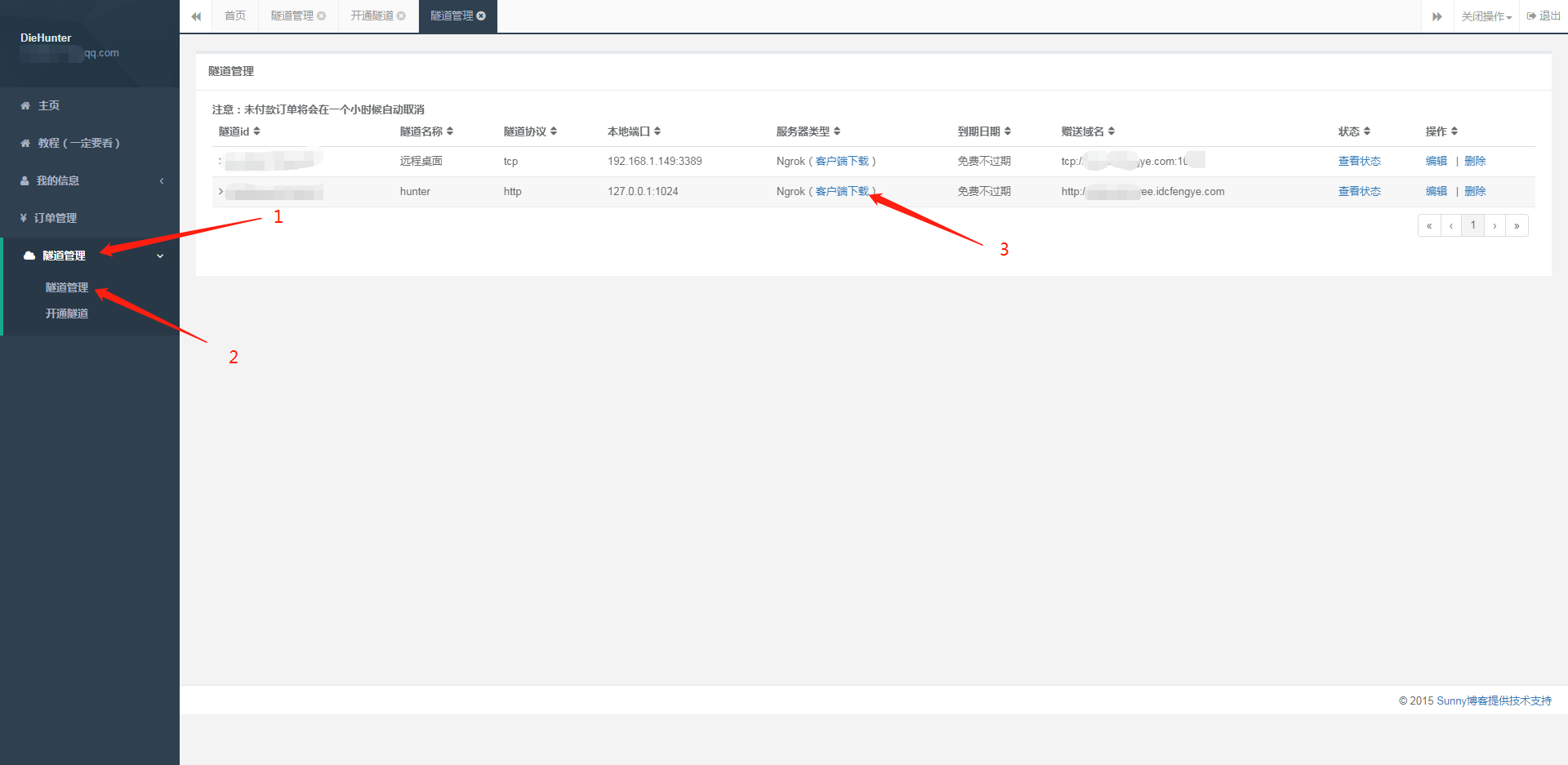 - Sunny-Ngrok:免费版,带宽:10 Mbps,限速:128 Kbps,限流:无限,隧道数量:每种协议1条