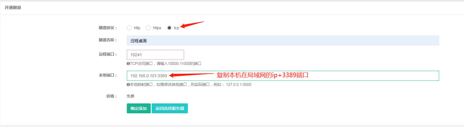 和之前一样,购买新的免费服务器,并且配置tcp协议,这里有两点需要注意:
