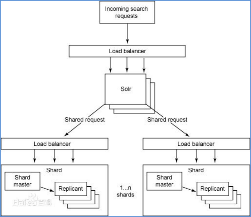 实现的思路是将索引数据进行Shard(分片)拆分,每个分片由多台的服务器共同完成,当一个索引或搜索请求过来时会分别从不同的Shard的服务器中操作索引。