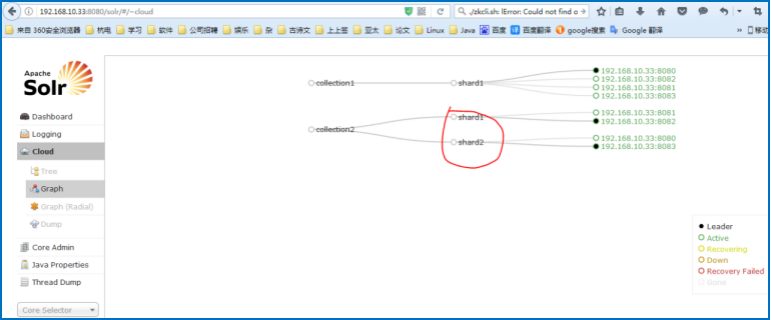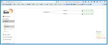 4个solr实例,两主两备,因为每个片shard,是存成一主一备
