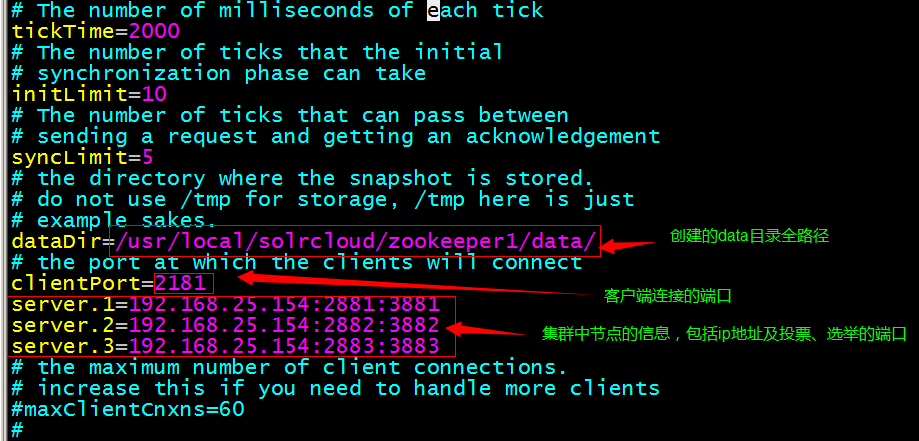 修改每个solrhome的solr.xml文件。将host改成虚拟机ip地址,port改成对应的tomcat的端口号。