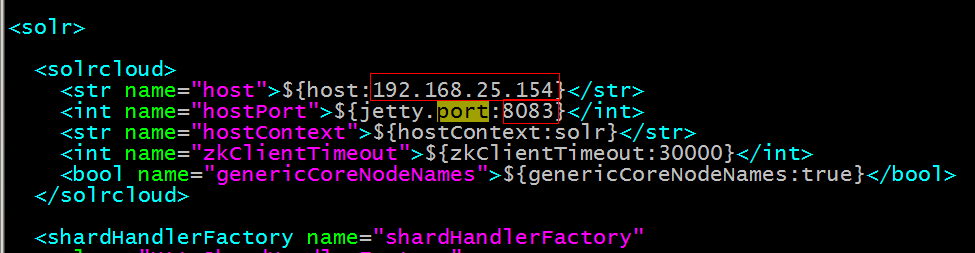 修改solrhome下的solr.xml文件,指定当前实例运行的ip地址及端口号。