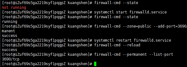 firewall-cmd --zone=public --add-port=3690/tcp --permanent# 重启防火墙