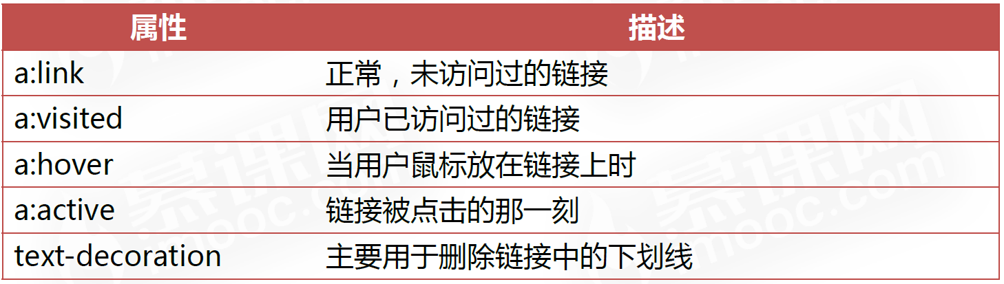 <head><meta charset="UTF-8"><title>链接</title><style>/* 正常,未访问过的链接 */a:link {color: lightgreen;/* 修改链接的文本样式 */text-decoration: none;/* 设置链接的背景颜色 */background-color: lightyellow;}/* 当用户鼠标放在链接上时 */a:hover {color: lightcoral;}/* 用户已访问过的链接 */a:visited {color: lightblue;}/* 链接被点击的那一刻 */a:active {color: lightslategray;}</style>