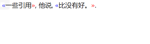 <head><meta charset="UTF-8"><title>伪元素</title><style>q::before {content: "«";color: blue;}q::after {content: "»";color: red;}</style>
