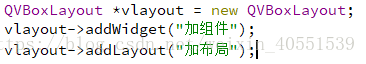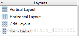 这4个是布局,用代码敲分别需要加<QVBoxLAyout><QHBoxLayout><QGridLayout><QFormLayout>头文件。前两个分别为竖直布局与横向布局,主要用到的两个函数为