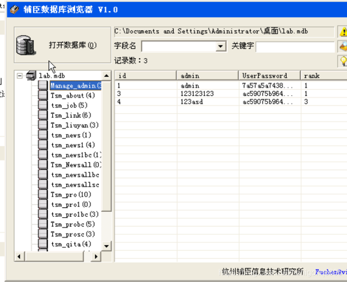 6)保存之后打开桌面的辅臣数据库浏览器,并打开刚才保存的数据库就能看到网站的数据库了。