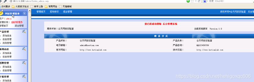 发现密码也为admin ,在结合之前发现的后台,这样我们就可以进入后台