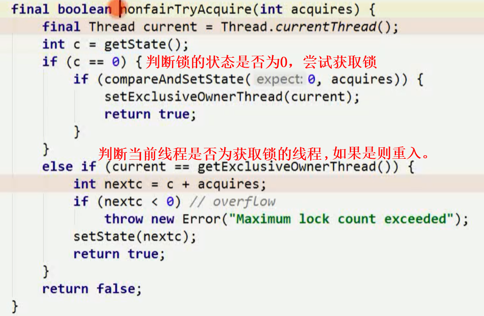 2、3... 说明该获取到线程可能重入了(Lock锁具有可重入性)。每调用lock锁的方法一次,state加1。调用unlock方法一次,state减1,完全释放锁的情况下state=0.