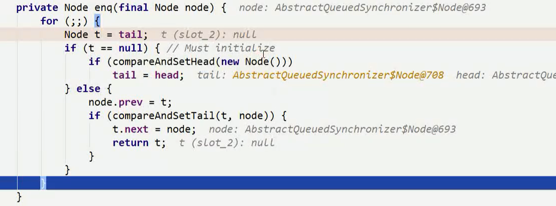 在AQS中没有抢到锁的线程,放在链表中最后一个位置(头节点是空的,没有任何属性)