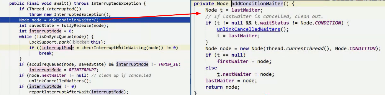 1)存放当前线程至condition单项链表