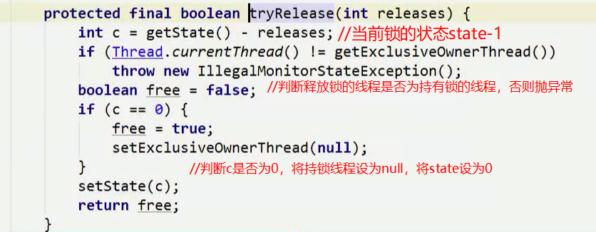 2)释放锁,使状态为0,唤醒其他线程获取锁。