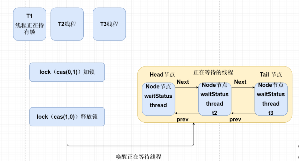 线程唤醒:AQS先获取需要唤醒的线程节点(头节点的next节点),然后通过LockSupport.unpark(Thread thread)将线程唤醒。