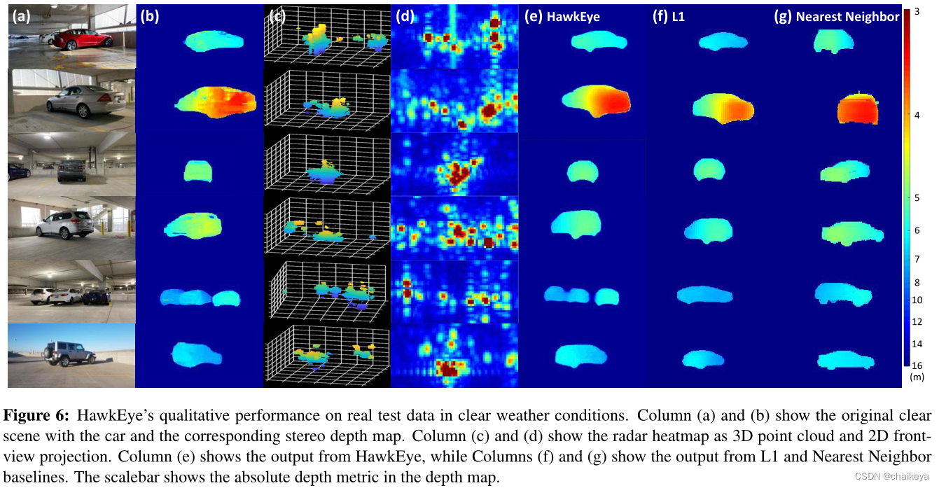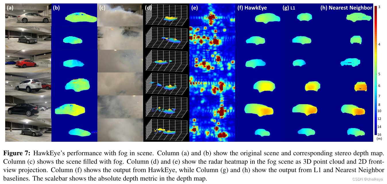 3、最近邻方案:HawkEye优于最近邻基准,在晴朗天气下可提高1.3倍至3倍,在雾天可提高1.4倍至2.4倍。这表明我们的模型没有过度拟合,可以很好地推广到测试集中的新数据点。