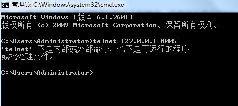 当我们在cmd客户端输入telnet ip的时候,会提示'telnet' 不是内部或外部命令的错误,这是因为我们的Windows系统的Telnet客户端程序没有开启。例如: