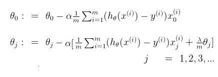 。因此对正则化线性回归使用梯度下降(gradient descent),为: