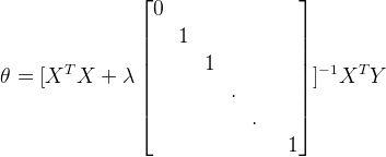其中,上式中的对角矩阵维度是(n+1)*(n+1)。在以前的博客讲正规方程的时候讲过当