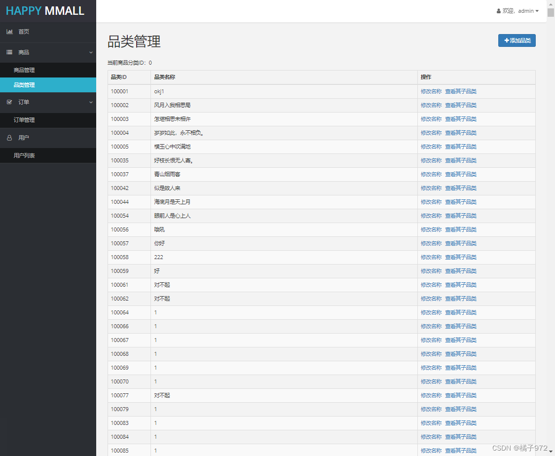 添加品类:把需要添加的品类id 品类名称保存,发送