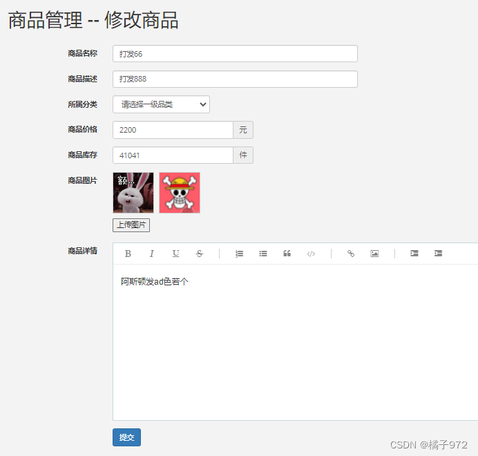 编辑:通过id ,拿到数据后可编辑,修改完成后查询提交修改后的数据