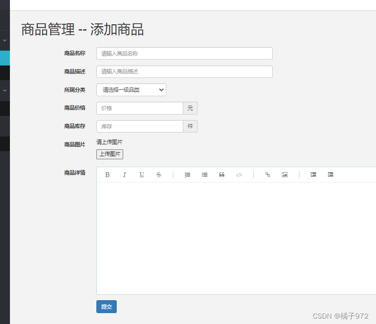 添加:添加页的内容进行存储,点击提交按钮进行发送存储的数据,