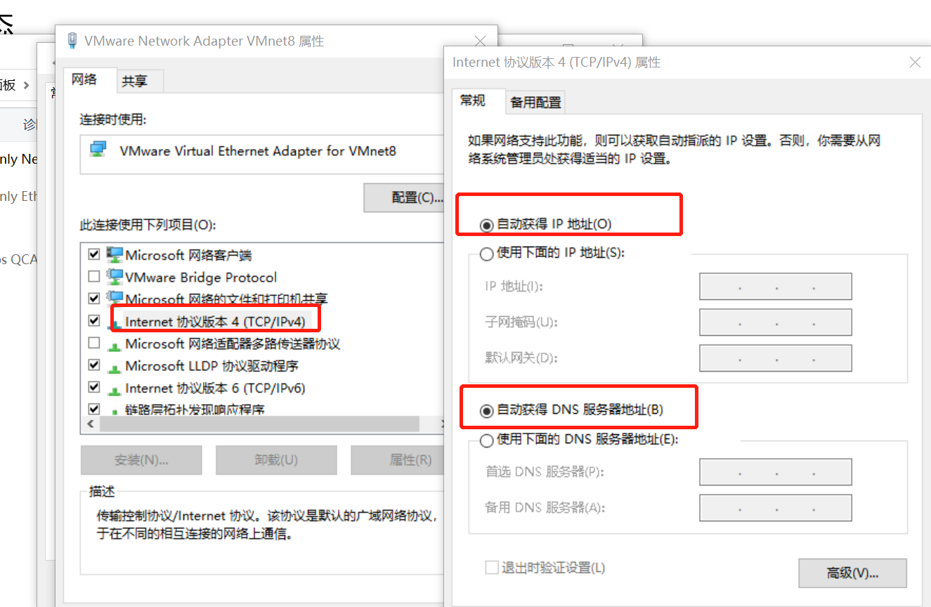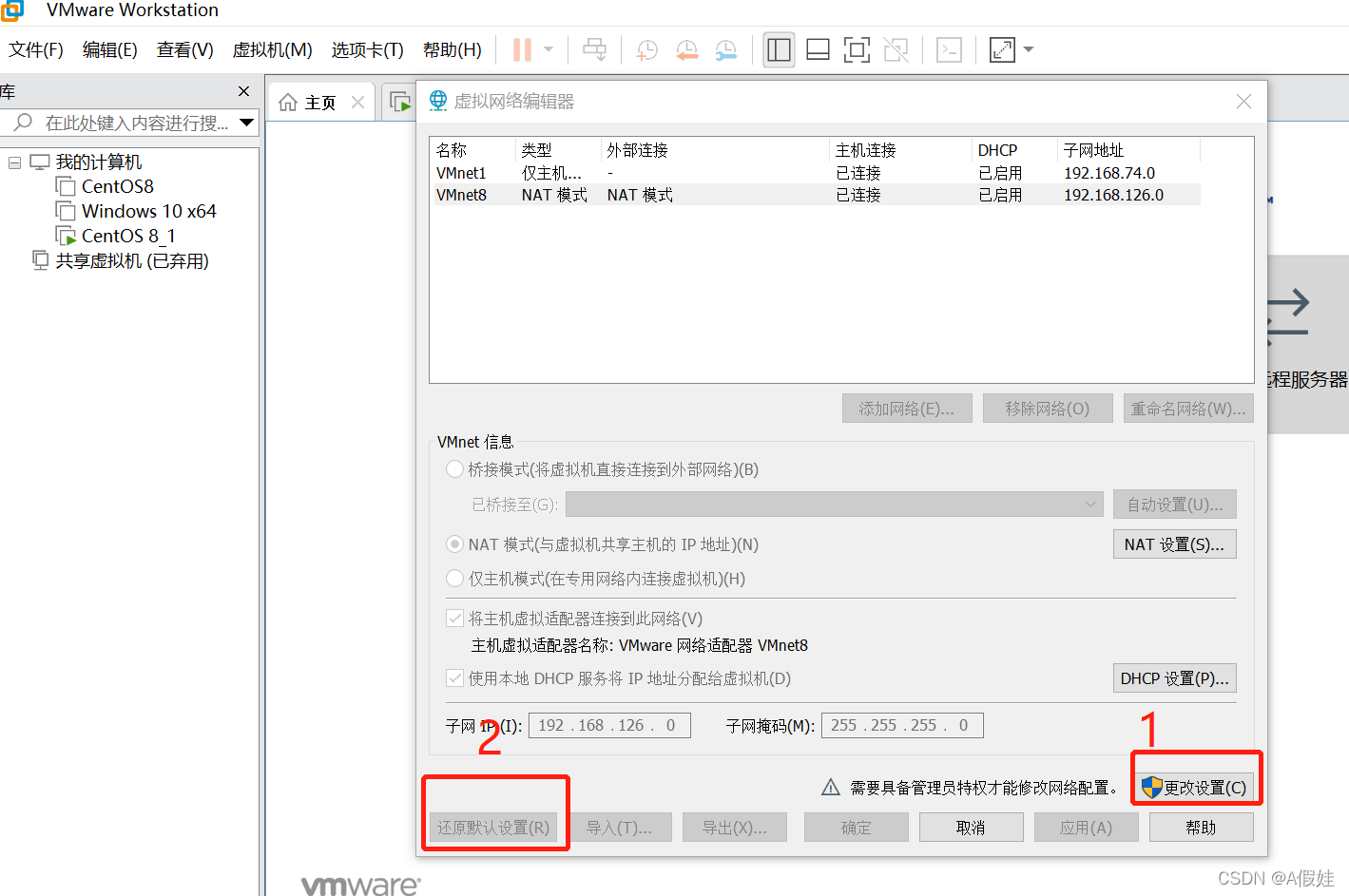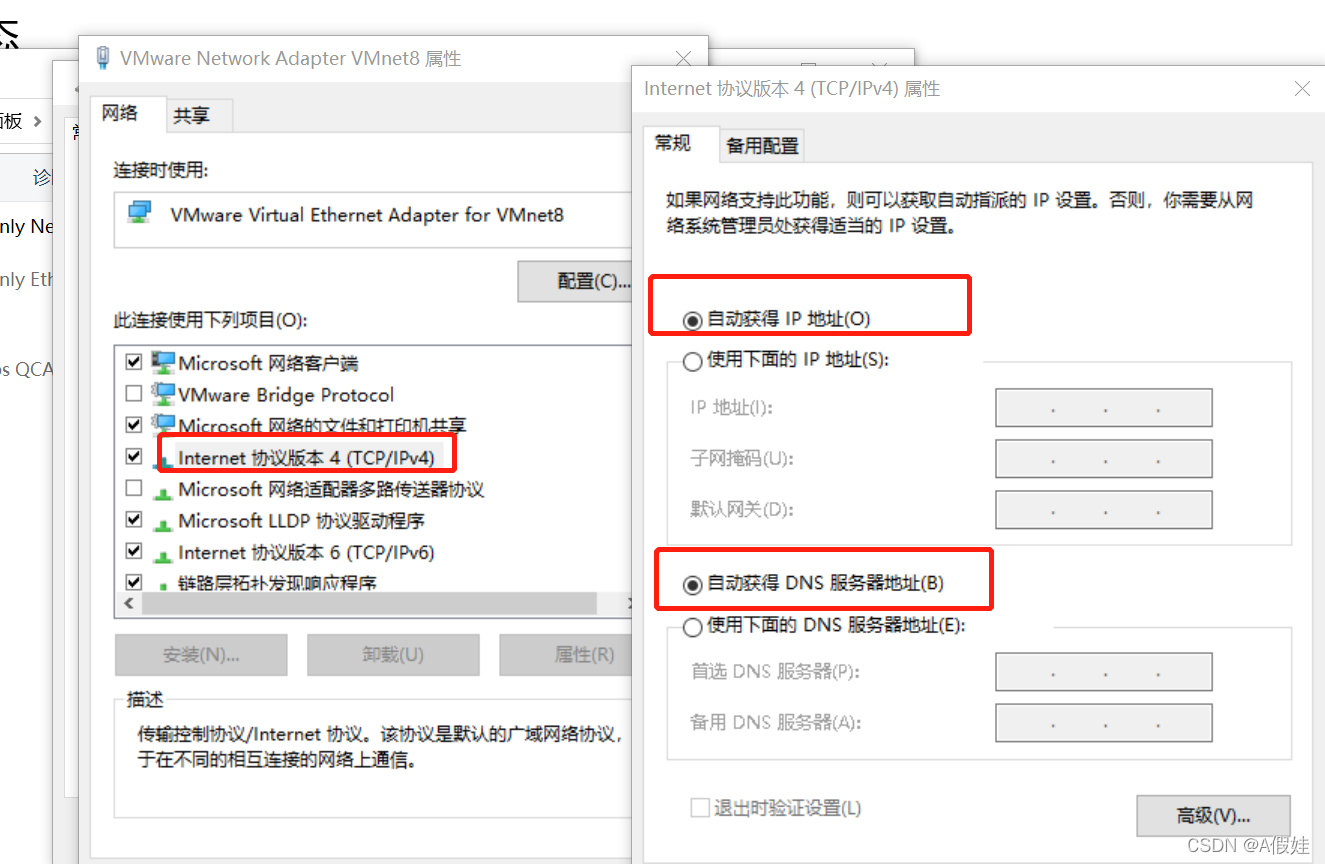 - 提示:以上所提到的NAT模式下的VMnet8虚拟网络,host-only模式下的VMnet1虚拟网络,以及bridged模式下的VMnet0虚拟网络,都是由VMWare虚拟机自动配置而生成的,不需要用户自行设置。VMnet8和VMnet1提供DHCP服务,VMnet0虚拟网络则不提供。具体可以参考文章:VMware Network Adapter VMnet1/8详解_ziyouniao719672119的专栏-CSDN博客