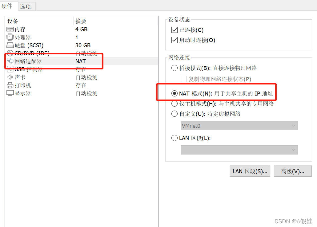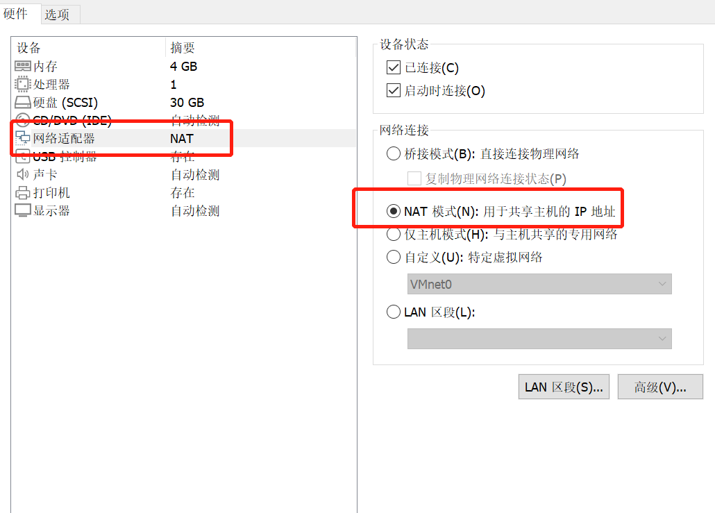 (2)这里选择nat模式,不要用别的。这个是最方便的配置
