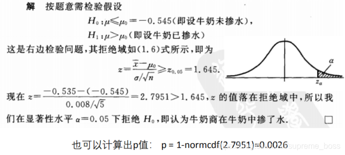 定义原理:总体服从正态分布,且该正态分布的均值未知,需要我们检验,但方差已知